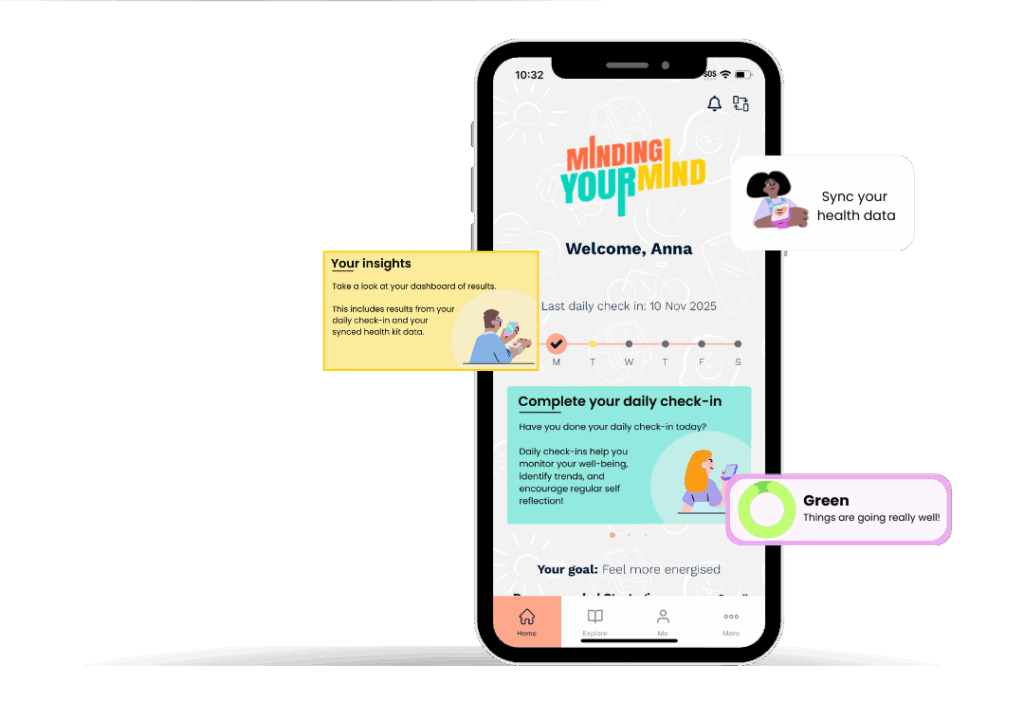 Researchers at the Brain and Mind Centre have created the ‘Minding Your Mind’ app as a tool to help you understand your mental health and identify patterns, empowering you to discover what works best for you.